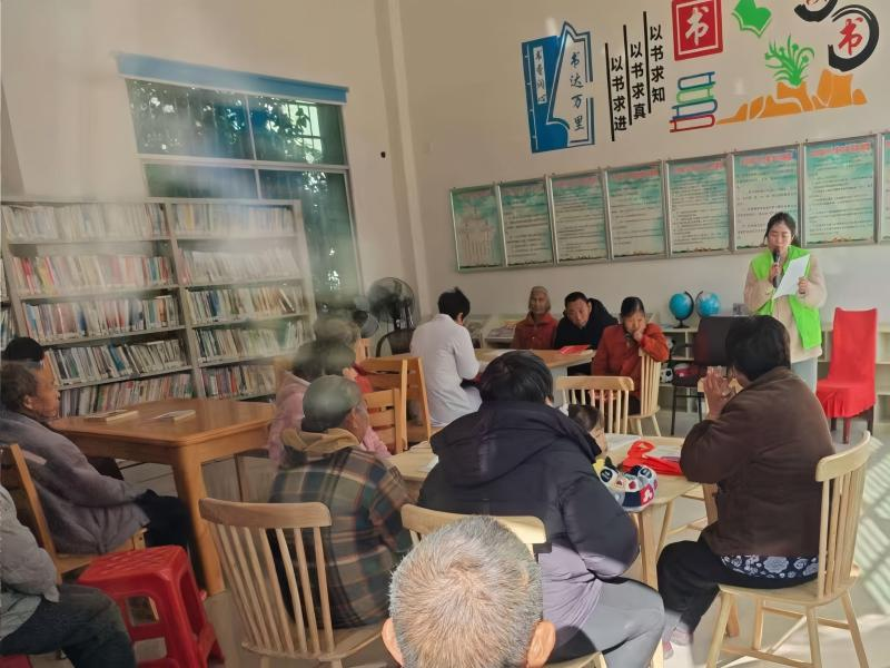 11月28日上午,梅溪镇大伍村农家书屋内暖意融融,一场集健康知识普及与慈善总会政策宣讲的活动在此开展,村内数十名村民齐聚参与。