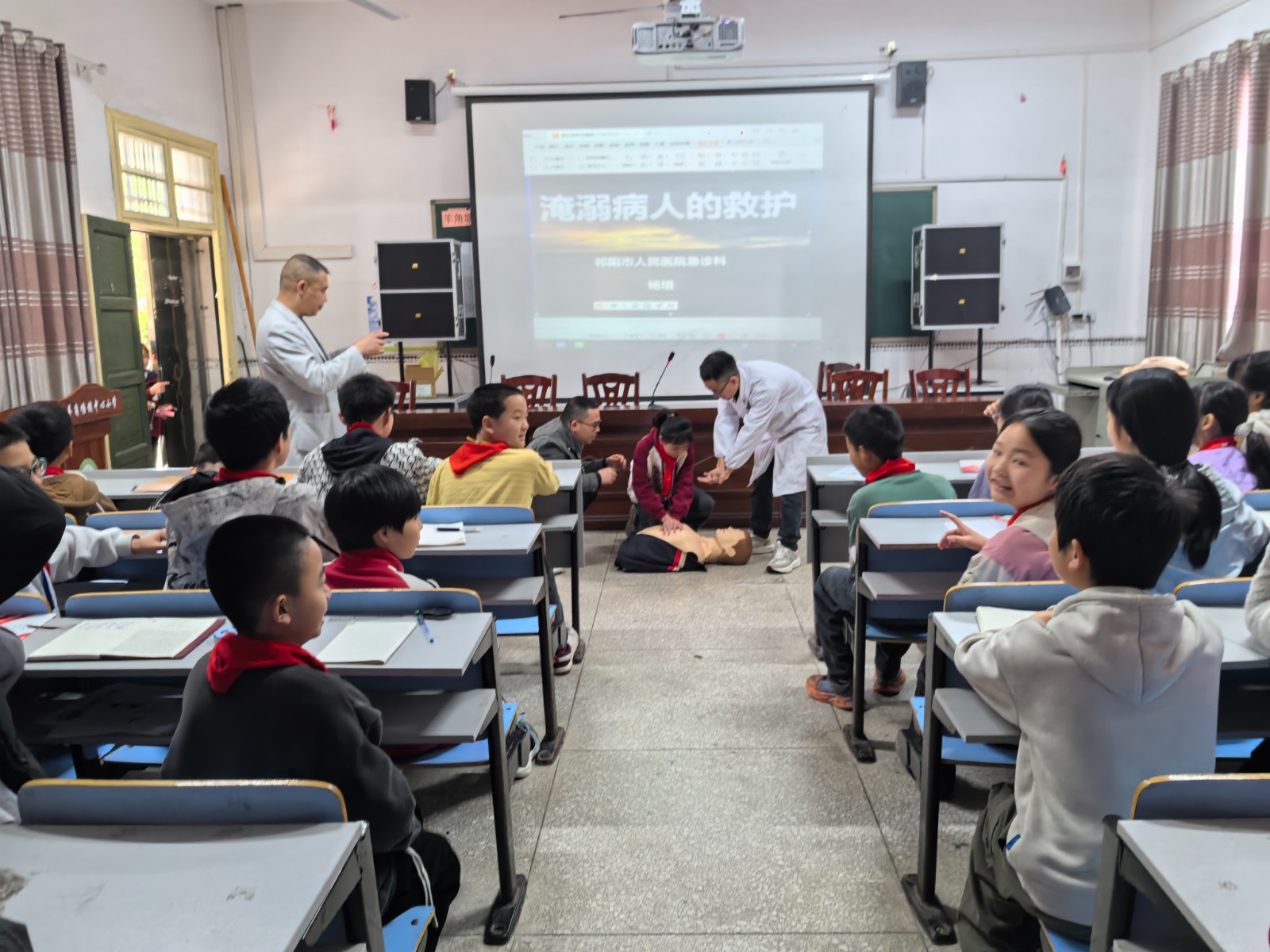 为进一步加强校园安全教育,提高学生防溺水安全意识和自救互救能力,筑牢校园安全防线,4月23日,祁阳人民医院组织专业医疗宣教团队急诊科杨培医生走进羊角塘镇中心小学,为全校的师生们带来了一场别开生面、干货满满的防溺水安全知识讲座及急救技能实操培训。