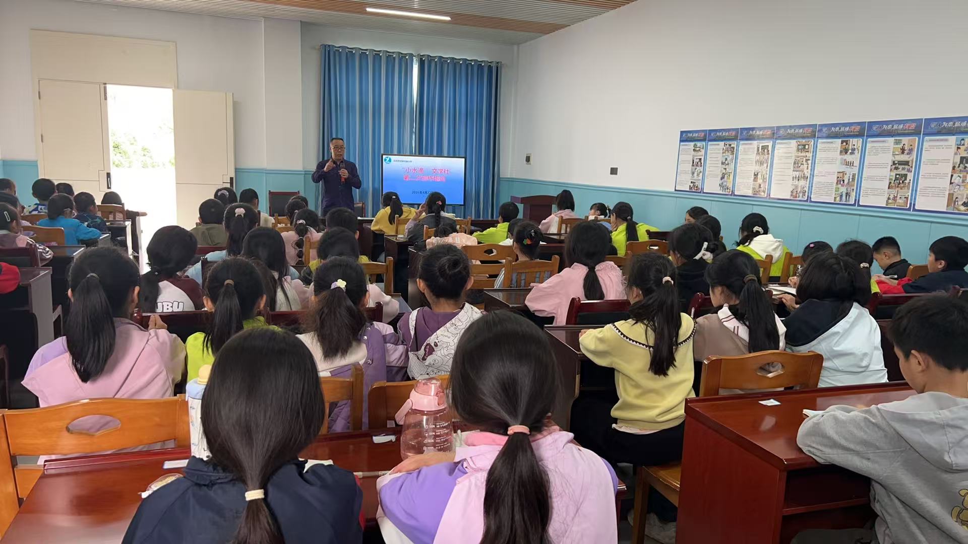 近日,祁阳市浯溪完小“小水滴”文学社第二次专题培训活动开讲,百余名热爱文字的孩子端坐课堂,眼神里满是对创作的期待。主讲老师从生活中的诗意瞬间切入,引导孩子们捕捉风的形状、雨的声音、课间的欢笑,把日常所见所感化作灵动的诗句。