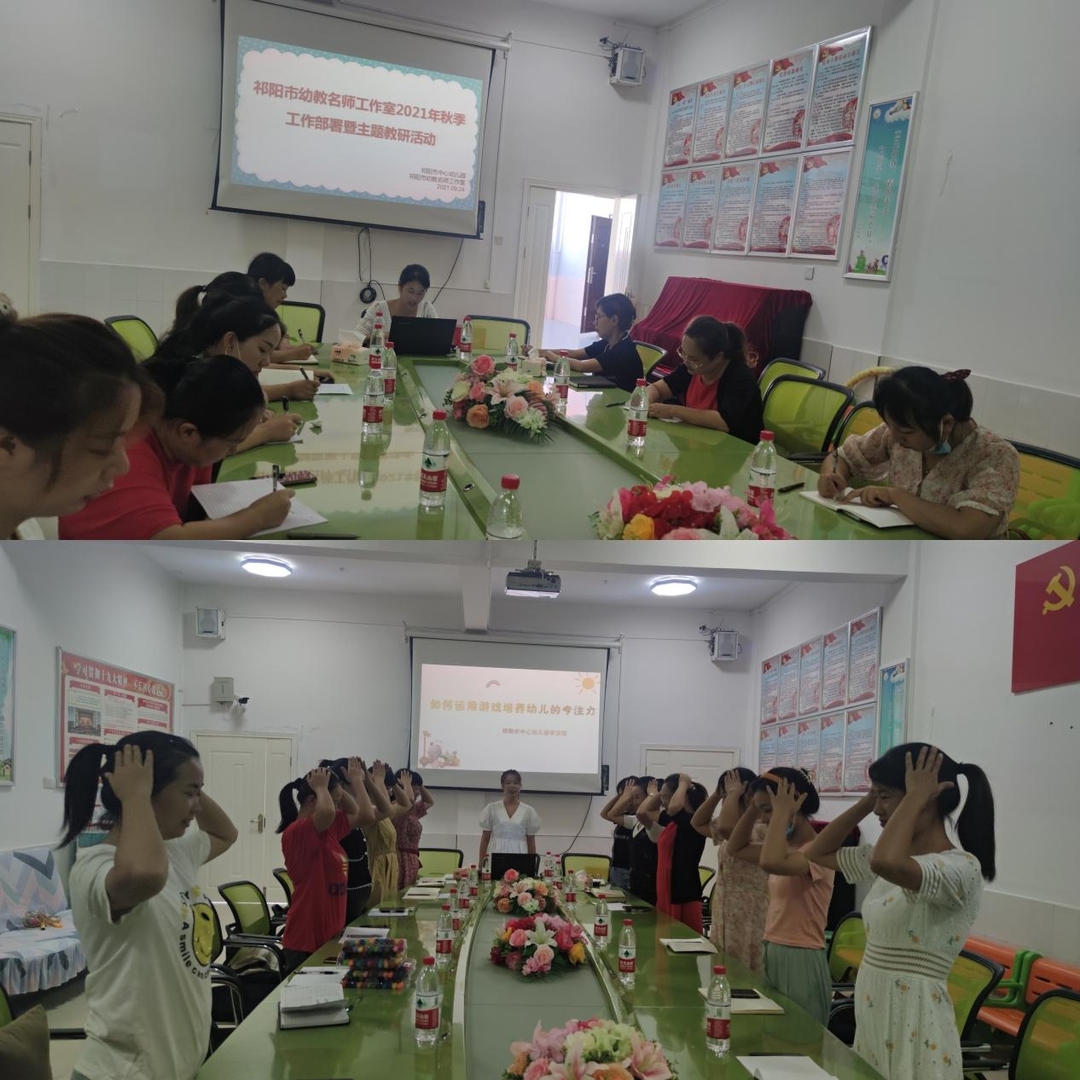 9月24日,祁阳市幼教名师工作室全体成员齐聚在市中心幼儿园三楼会议室,参加工作室本学期第一次会议暨主题教研活动“在游戏中提升幼儿专注力”。