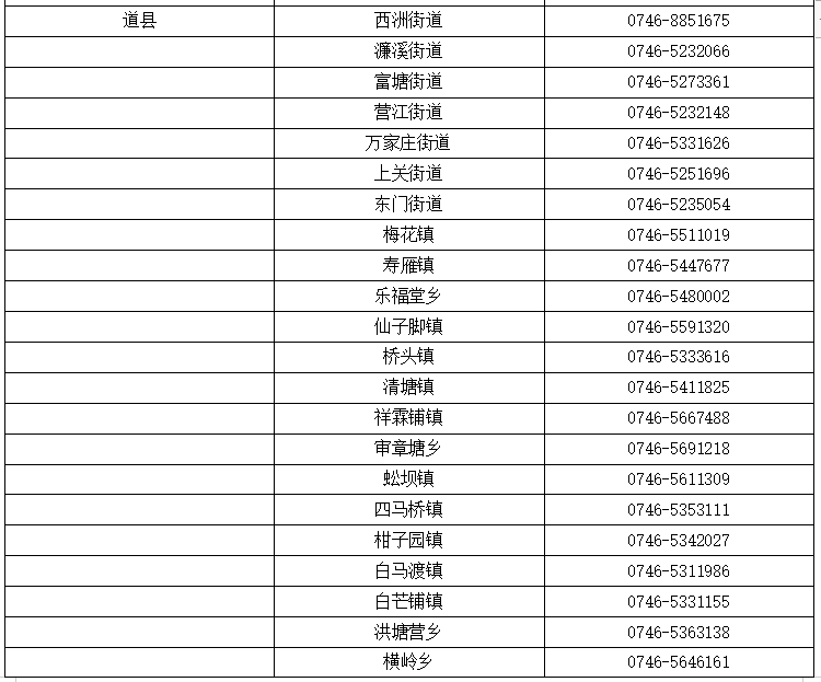 永州市各乡镇(街道)值班电话